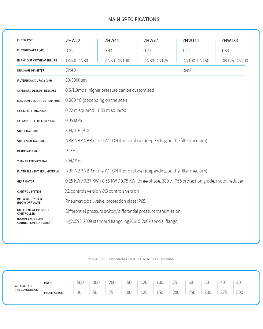 ZHW series scraper self-cleaning strainer (ZHW filter) is an efficient self-cleaning filter developed by nine companies, which reaches the world leading level. The particle impurities on the surface of the filter are removed by the motor driven scraper, which is used to remove all kinds of high viscosity liquids and continuously clean online, without the need of manual cleaning of the filter element, and no filter consumables are produced. Control the time/pressure control by PLC, automatically eliminate the high concentration of impurities in the contaminated cavity, and eliminate the recovery and discharge of residual liquid.