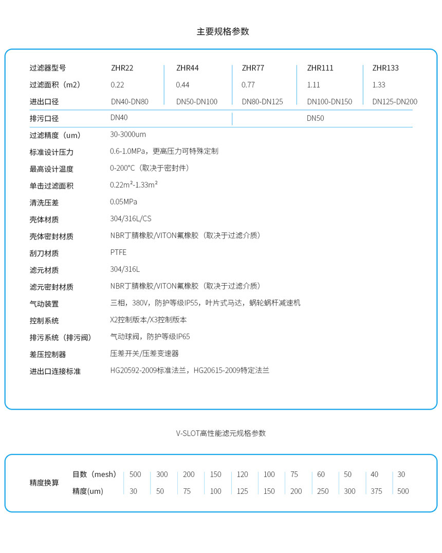 - 采用獨(dú)特的V-SLOT濾元,獨(dú)特的過濾面結(jié)構(gòu),刮除效果極佳,過濾開孔間隙均勻一致,一體成型,堅(jiān)固耐用。